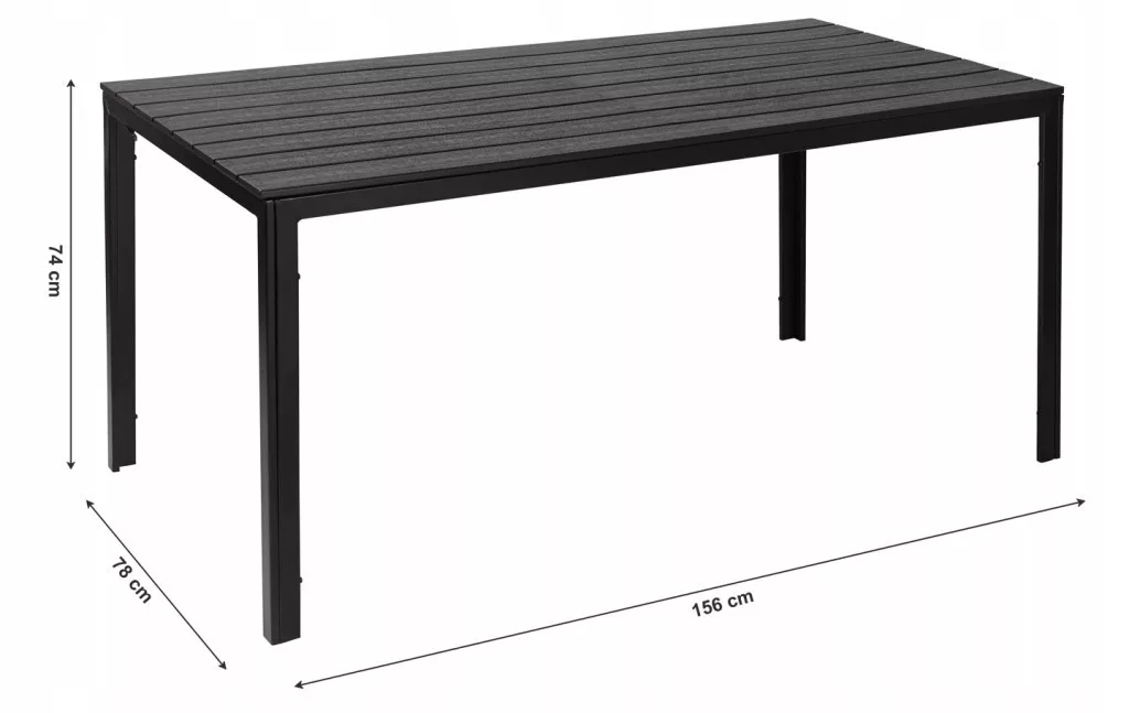 6 személyes kerti asztal 156x78 cm polywood fekete
