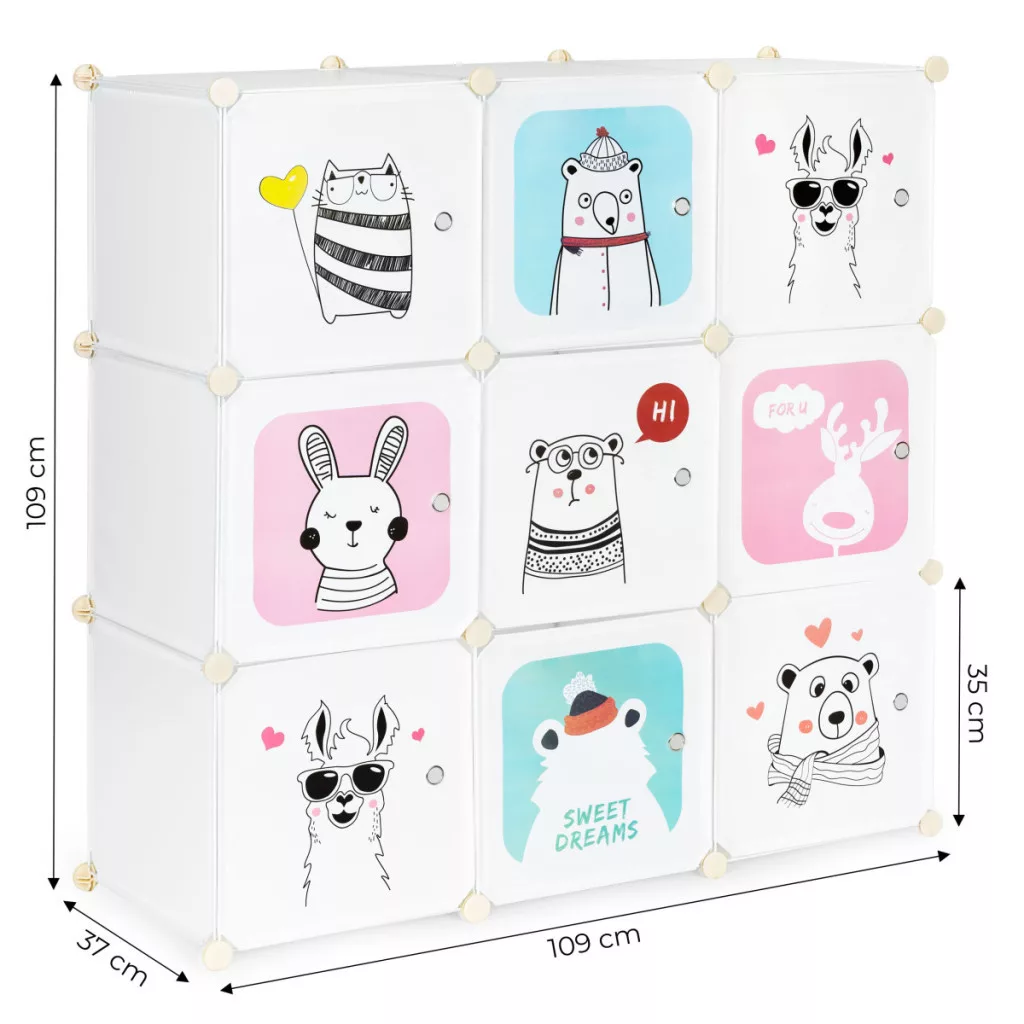 Az 9 polc mindegyike akár 3 kg terhelést is elbír, ami azt jelenti, hogy könyvek, plüss barátok vagy építőkockák is könnyedén elférnek rajtuk. A tárolt tárgyakhoz való könnyű hozzáférés teszia gyermekek maguktól is gondoskodhatnak a rendrakásról.