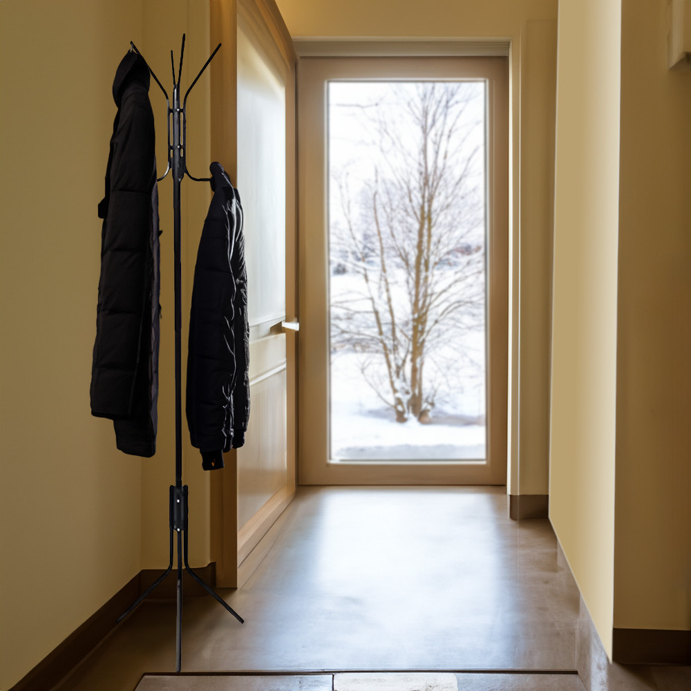 - Funkciók: A kabáttartó állvány 8 darab fogassal rendelkezik, amelyek elegendő helyet biztosítanak kabátok, dzsekik, vagy egyéb ruhadarabok akasztásához.