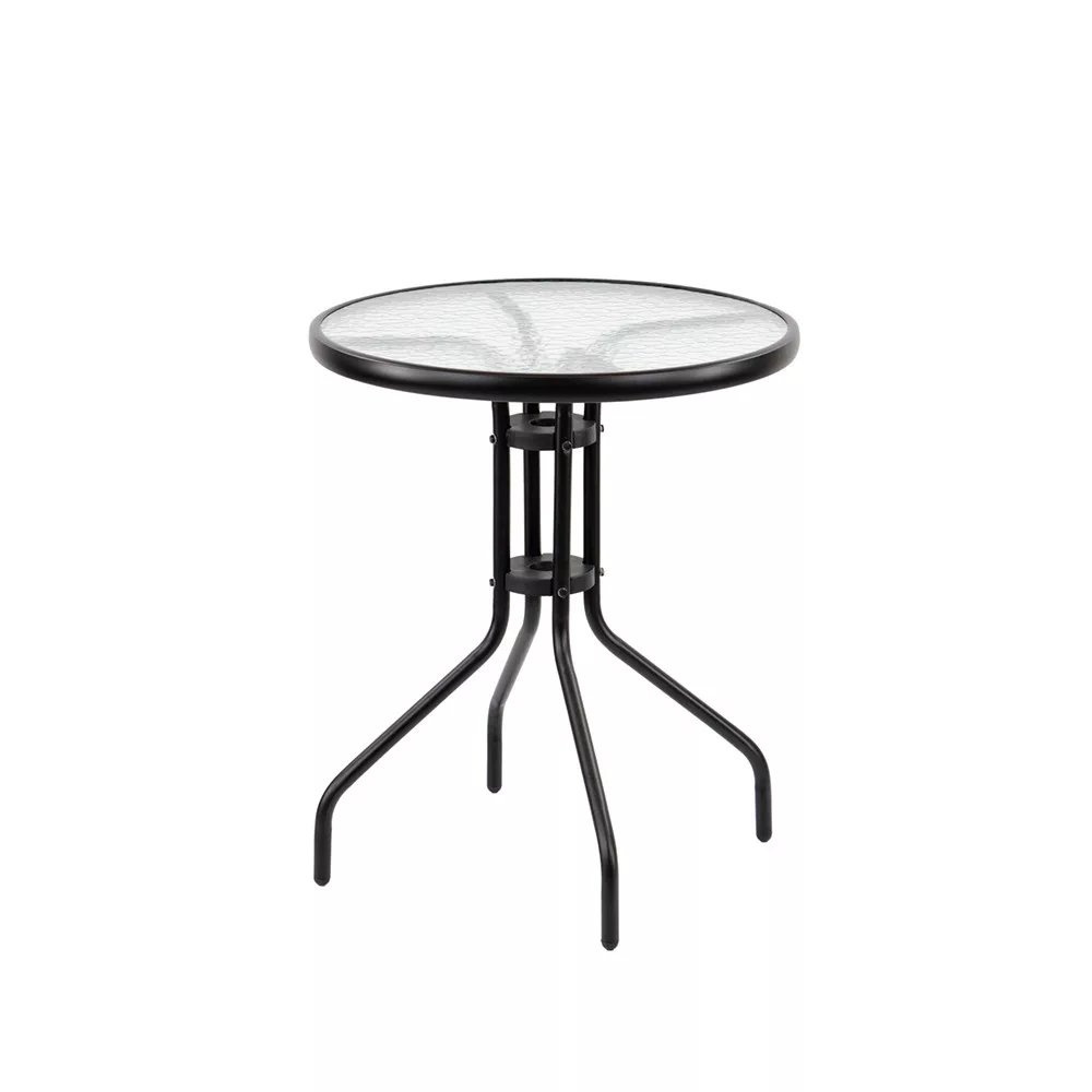 Ez a kerek fémvázas kerti asztal egyaránt funkcionális és esztétikus. A fémváz biztosítja a tartósságot és stabilitást, míg az üveglap modern, elegáns megjelenést kölcsönöz. Az 5 mm vastagságú edzett üveglap tartós és ellenáll az időjárási viszonyoknak, így hosszú éveken át megőrzi eredeti állapotát.