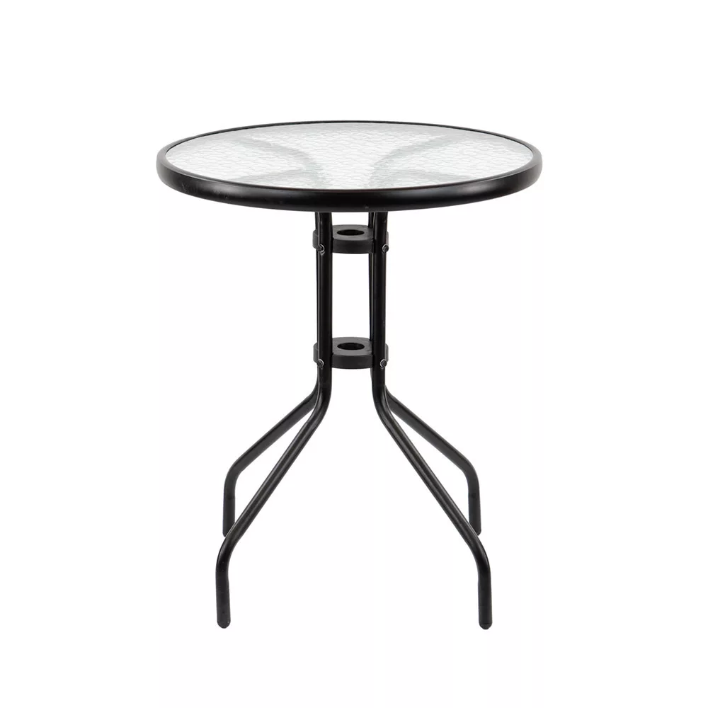 A kerek forma nemcsak elegáns, hanem helytakarékos megoldást is kínál. Az Andora asztal vizuálisan tágítja a teret, így kis teraszokon és erkélyeken is tökéletesen mutat. A fekete fémváz és az üveglap kombinációja modern hangulatot kölcsönöz bármely kültéri térnek.