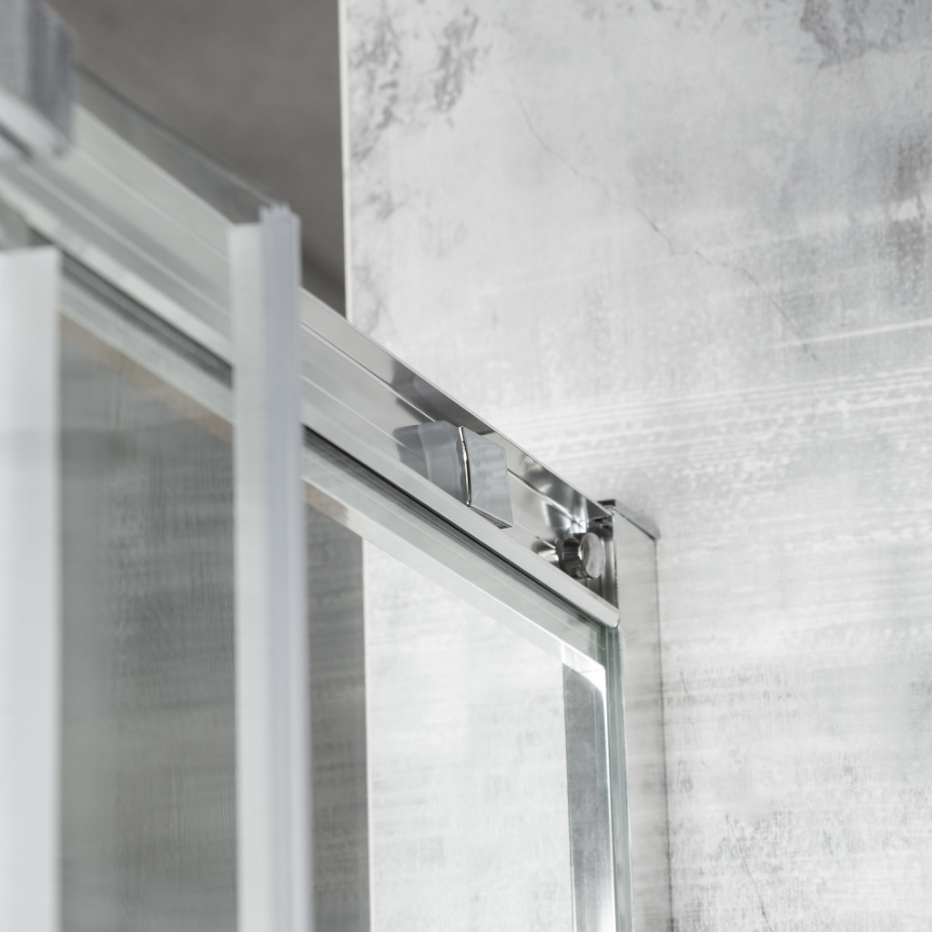 A kétszárnyú tolóajtók használata lehetővé teszi a kényelmes nyitást anélkül, hogy szabad helyet kellene hagyni a kabin előtt. Az átlátszó, 5 mm-es edzett üveg ütésállóságot és biztonságot nyújt a mindennapi használat során. A szerkezeti stabilitást krómozott alumínium profilok garantálják , amelyek ellenállnak a nedvességnek és a korróziónak.