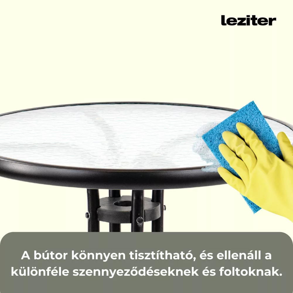 | Andora Asztal | 71 cm | Átmérő: 60 cm | Anyag: Üveg és fém, Üveg vastagság: 5 mm, fémváz, időjárásálló |