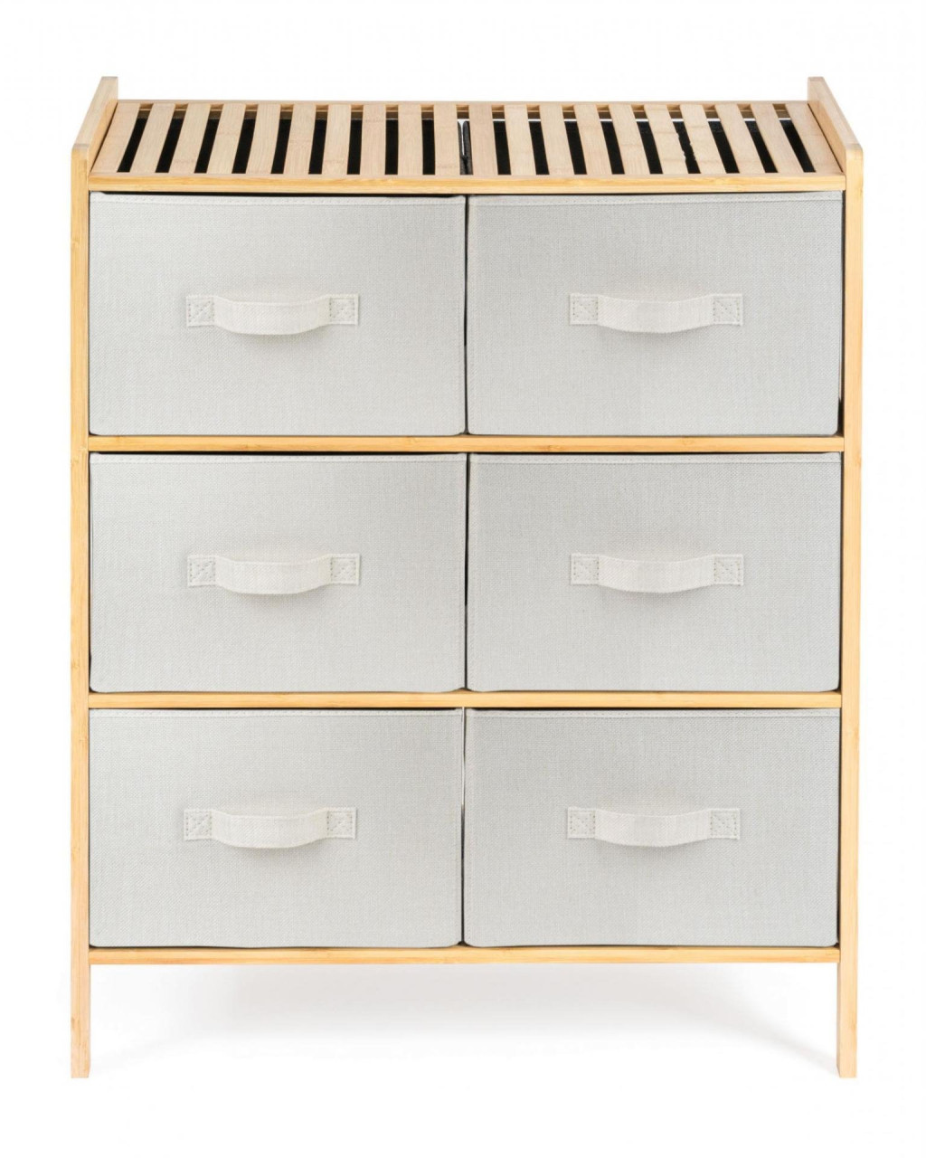A kihúzható szövetfiókokkal ellátott bambuszpolc kellemes természetes tapintást kölcsönöz a belső térnek, könnyedség és természetesség érzetét, ereje és hosszú élettartama pedig stabilitást és tartósságot biztosít.