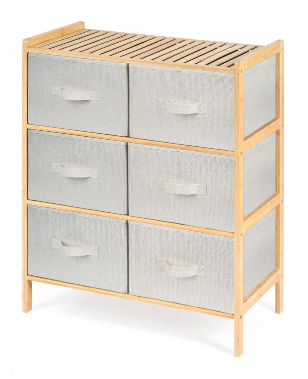 A praktikus állvány 6 kihúzható textilkosárral sok helyet takarít meg, és mindent tárolhat benne, amire szüksége van. Mosási vagy szépségápolási kellékek, ruhák és gyermekjátékok. Minden kosár 20 literes, szélessége 31 cm, magassága 19 cm, mélysége 35 cm. Az egész állvány 78,5 cm magas.