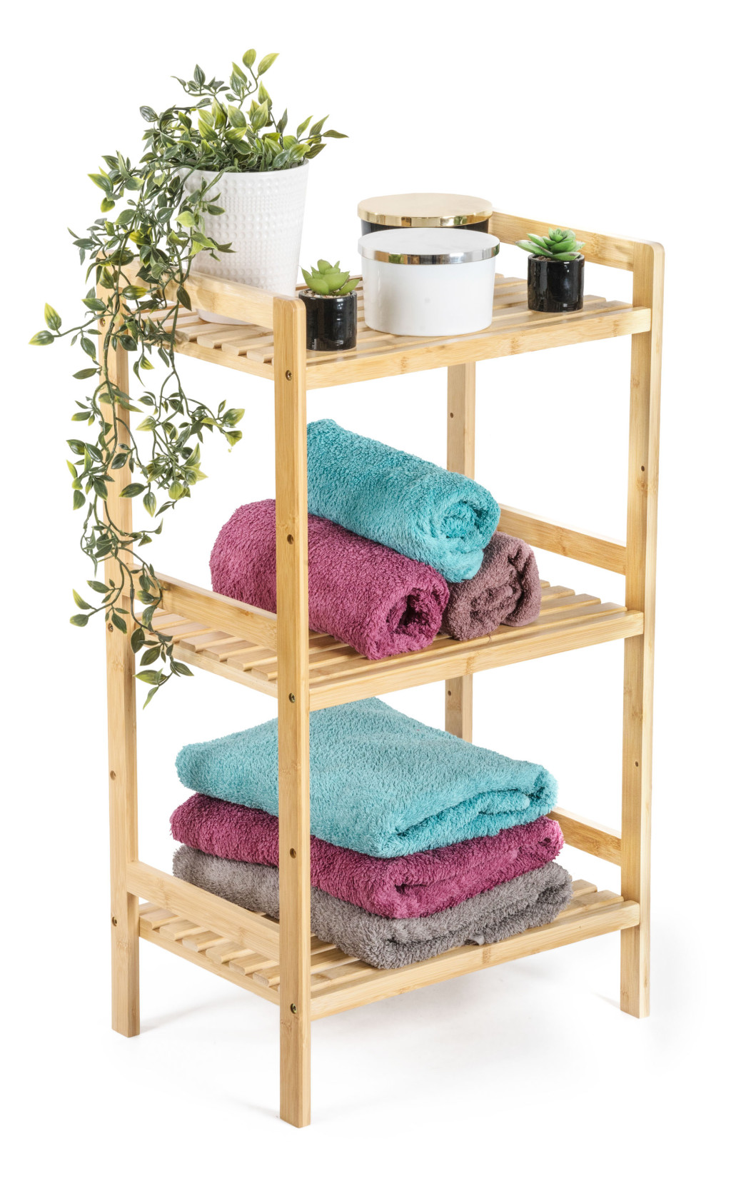 A bambusz meglepően könnyű, így könnyedén kezelheti az egész állványt a polcokkal. Ugyanakkor elég erős ahhoz, hogy elviselje a nagyobb terhelést. Emellett a bambuszfa egyik kiváló tulajdonsága az hogy ellenáll a nedvességnek és a természetes rezisztenciája a baktériumokkal és gombákkal szemben , így nem kell aggódnia az elhelyezés miatt. a fürdőszobában vagy a mosókonyhában.