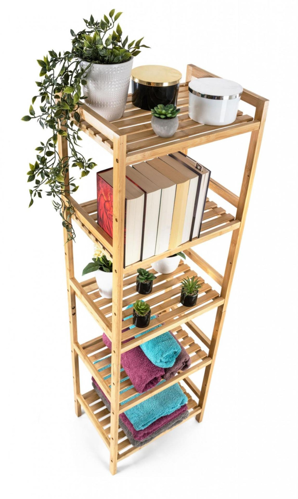 Egy stílusos és praktikus tárolási megoldást keres, amely jól néz ki, hosszú ideig tart és nem kerül sokba? Az öt polcos G21 bambusz állvány kialakításának, nagy teherbírásának és vonzó megjelenésének köszönhetően remek választás. Egyesíti a természetes anyagok szépségét, a funkcionalitást és a modern dizájnt. Így nemcsak hasznos, hanem dekorációs eleme is lesz otthonának vagy irodájának.