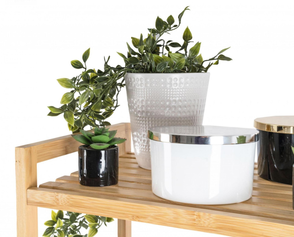 A három polcos bambusz polcállvány kellemes, természetes hangulatot kölcsönöz a belső térnek, könnyedség és természetesség érzetét, ereje és hosszú élettartama pedig stabilitást és tartósságot biztosít.