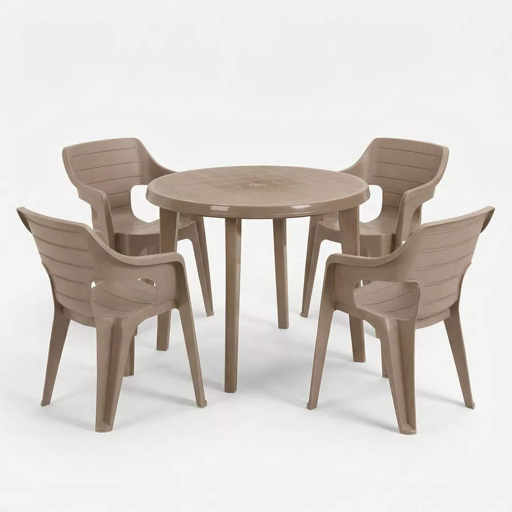 A Bellara 4+1 kerti bútor garnitúra szett cappuccino színben ideális választás kisebb kültéri terekbe, ha kényelmes, mutatós és praktikus étkezőszettet szeretnél.