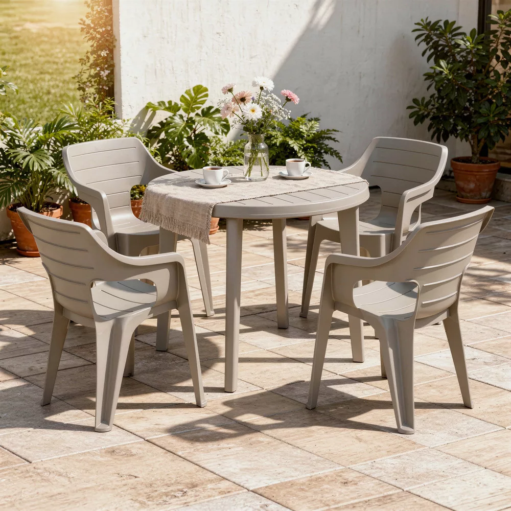 • 1 db Lisa műanyag kerti asztal – 90 cm átmérő, 73 cm magas