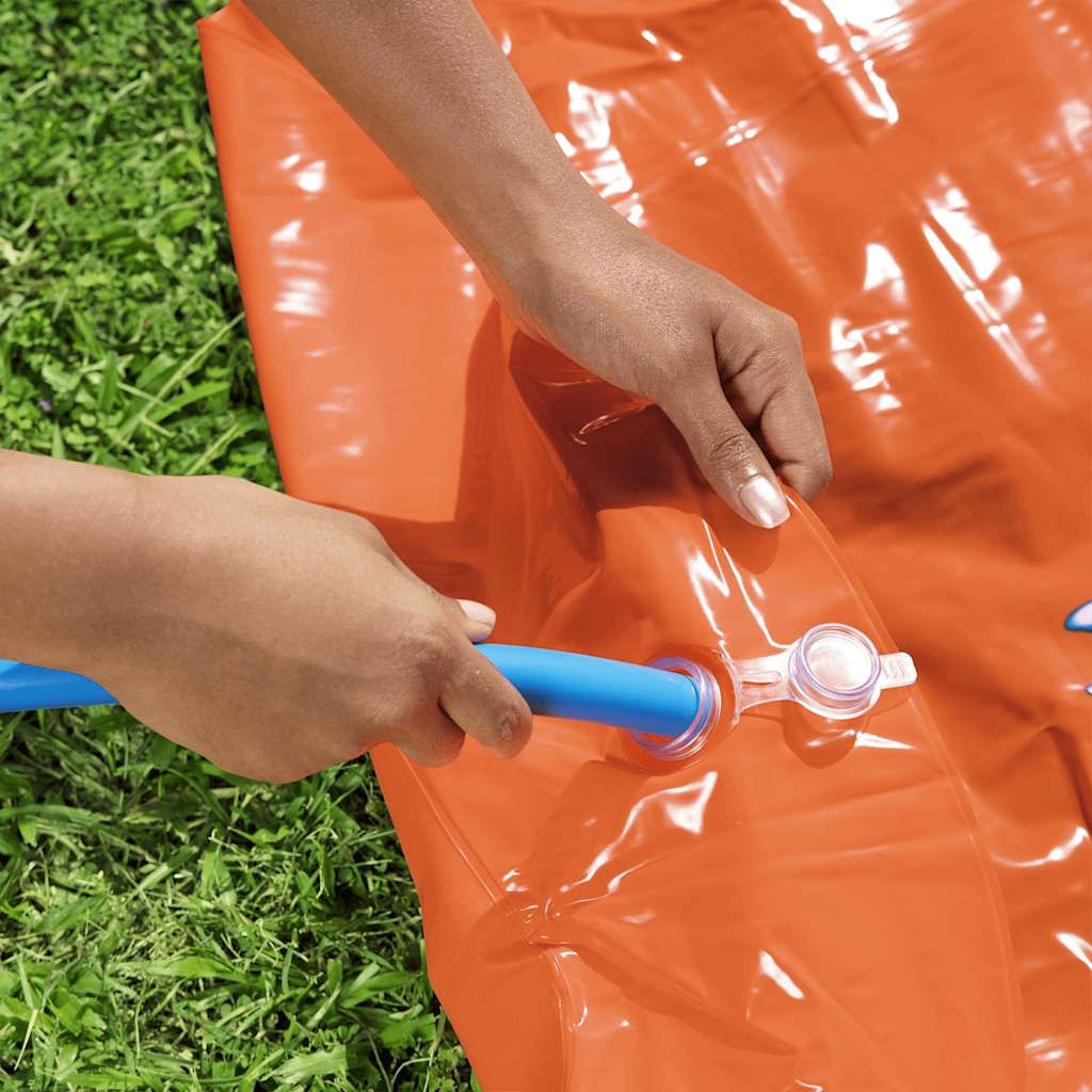 Tegye kellemesebbé a meleg nyári napokat ezzel a dupla pályás Bestway H2OGO Tsunami Splash Ramp csúszdával! Tsunami Splash Ramp: Ez a kerti csúszda Tsunami Splash Ramp rámpával van ellátva, amely a rámpa alól kinyomja a vízhullámokat, így hihetetlenül könnyed és gyors csúszást tesz lehetővé!Dupla pályás csúszda: Ez a felfújható vízi csúszda két pályával rendelkezik, így a gyerekek egymást váltva versenyezhetnek barátaikkal.Könnyű össze- és szétszerelés: A csúszda gyorsan és egyszerűen össze- és szétszerelhető. Így mindig rendelkezésre áll, és hosszú távú szórakozást biztosít. A locsolófejhez használt kerti tömlőhöz csatlakoztathatja, hogy megnedvesítse a csúszófelületet.
