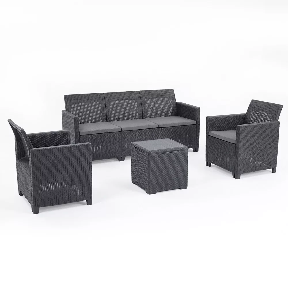 Claire IV 5 személyes kerti bútor garnitúra vigo tárolós asztallal grafit színben