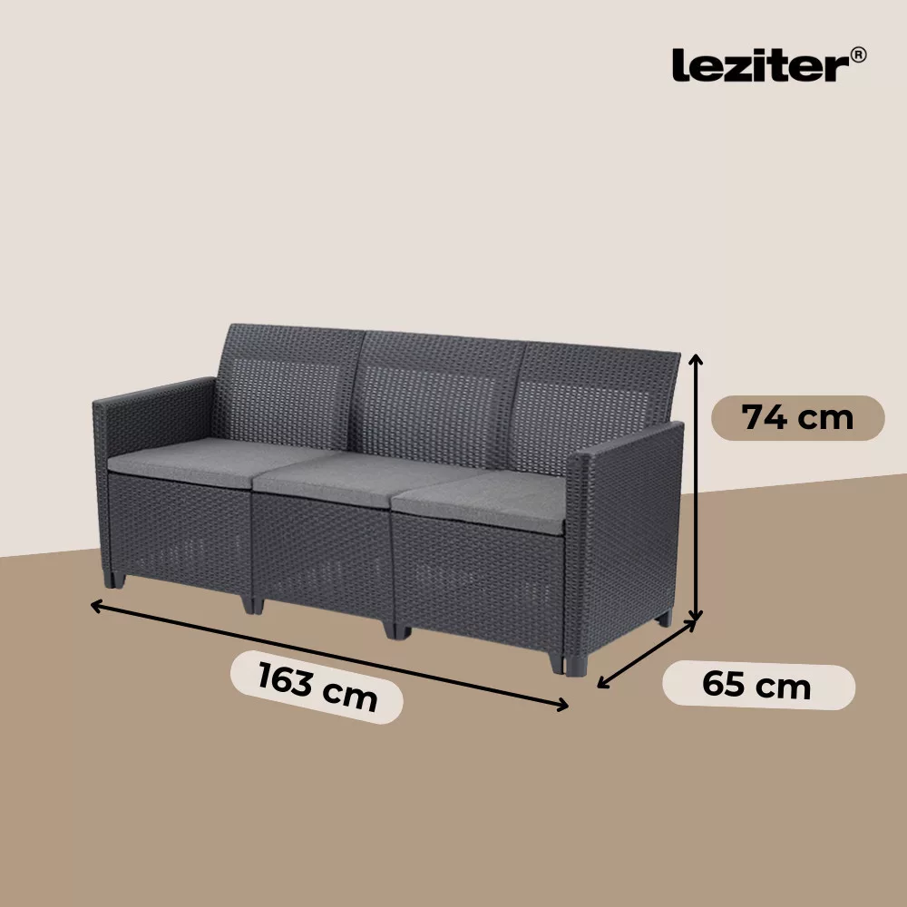 Időtálló bútor: A Grafit színű, stílusos párnákkal rendelkező kerti bútor szett könnyű, egyben tartós vázszerkezettel rendelkezik. Időjárásálló anyagai lehetővé teszik, hogy sok éven át a terasz, vagy az erkély kényelmes darabja maradjon.