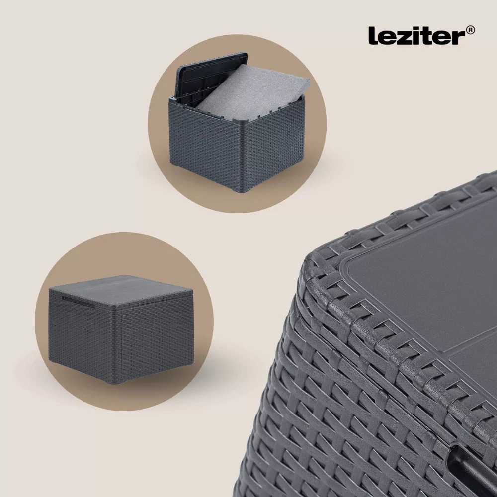A garnitúrához tartozó párnatartós asztal nemcsak helytakarékos és praktikus, hanem stílusos kiegészítője is az ülőgarnitúrának. Tároló funkciója révén mindig kéznél tarthatod a párnákat vagy egyéb kültéri kiegészítőket.