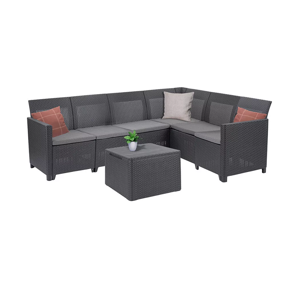 A kompakt és letisztult megjelenésű sarokgarnitúra kiváló választás akár kisebb teraszokra is. Modern formatervezése illeszkedik a legtöbb kültéri enteriőrhöz, így esztétikai élményt is nyújt.