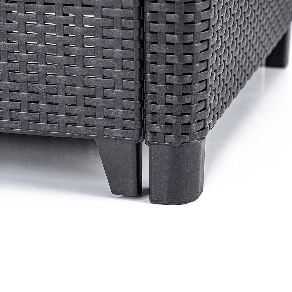 A garnitúrához tartozó párnatartós asztal nemcsak helytakarékos és praktikus, hanem stílusos kiegészítője is az ülőgarnitúrának. Tároló funkciója révén mindig kéznél tarthatod a párnákat vagy egyéb kültéri kiegészítőket.