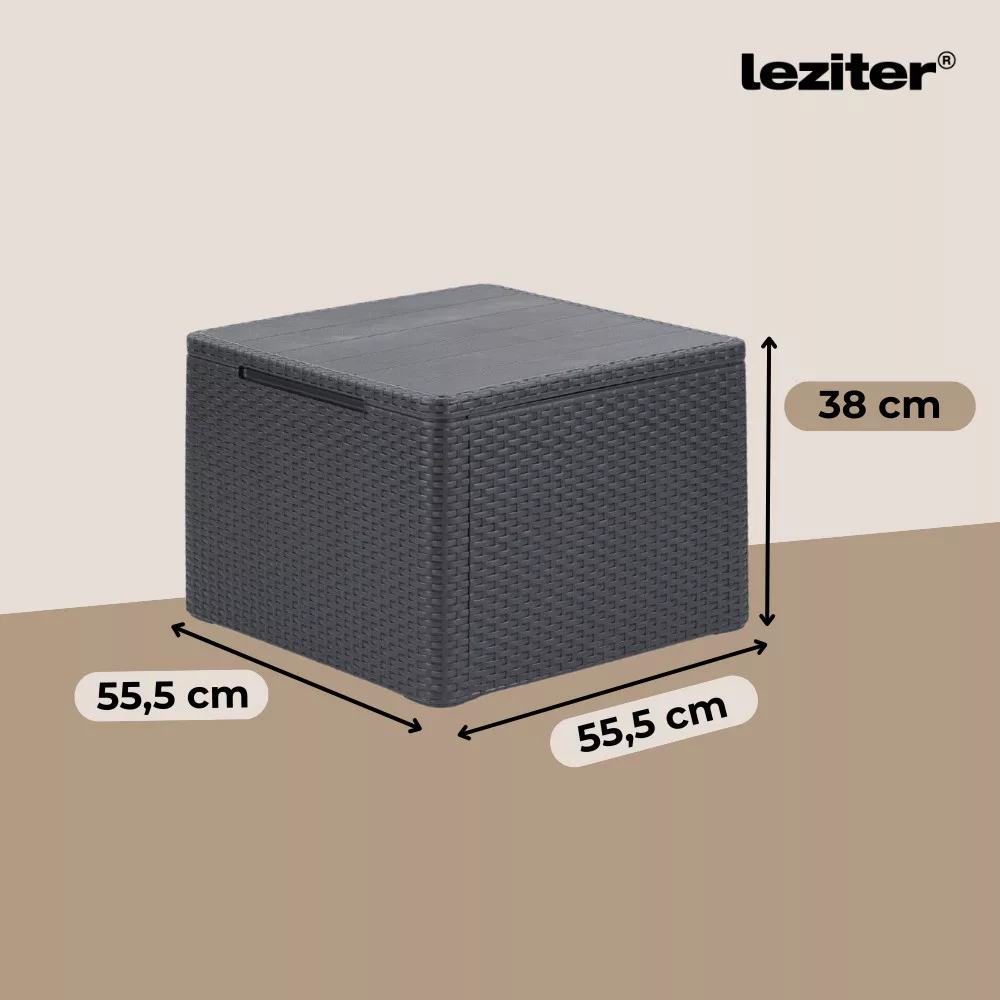 A garnitúrához tartozó párnatartós asztal nemcsak helytakarékos és praktikus, hanem stílusos kiegészítője is az ülőgarnitúrának. Tároló funkciója révén mindig kéznél tarthatod a párnákat vagy egyéb kültéri kiegészítőket.