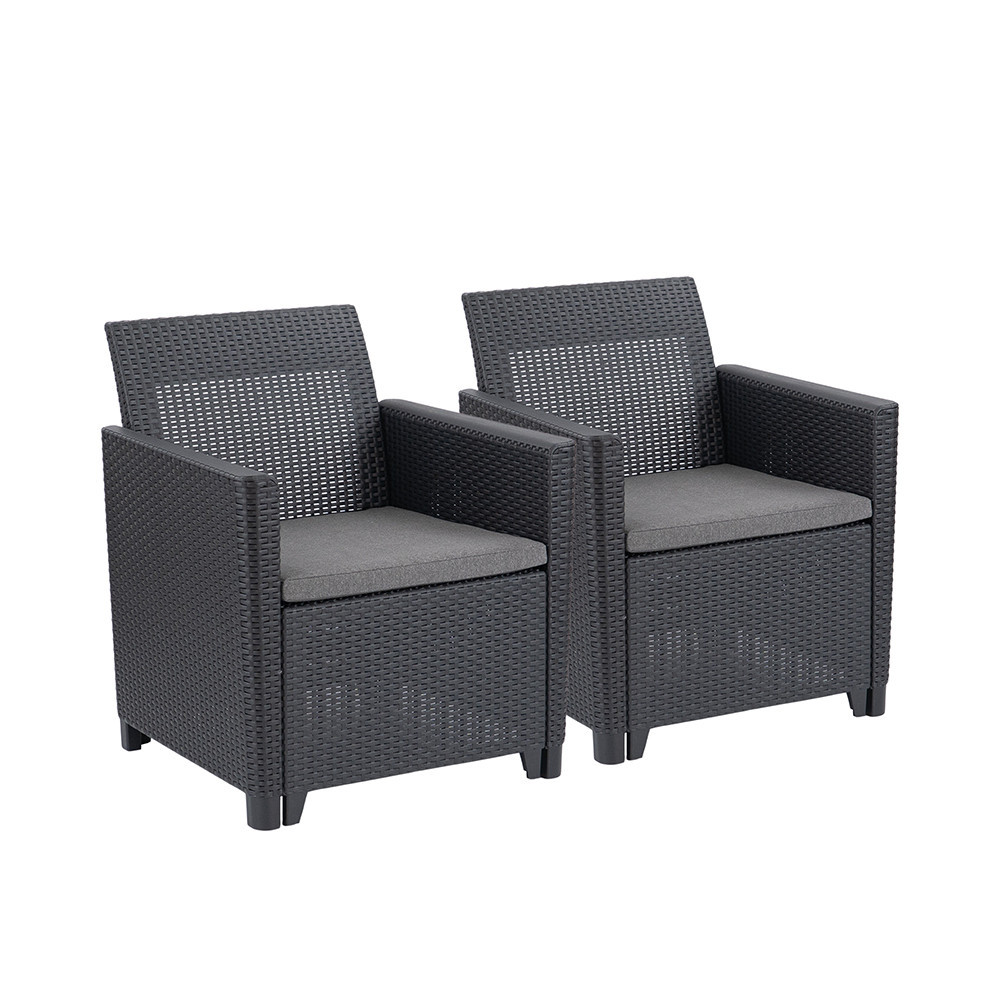 Keter Claire műanyag kerti rattan hatású fotel. Nagyon kényelmes kerti fotel, melynél a kényelmet a fotelhez tartozó párnák adják. Remekül illeszkedik bármely teraszra, vagy erkélyre, esetleg az udvarok hátsó kertjébe is.