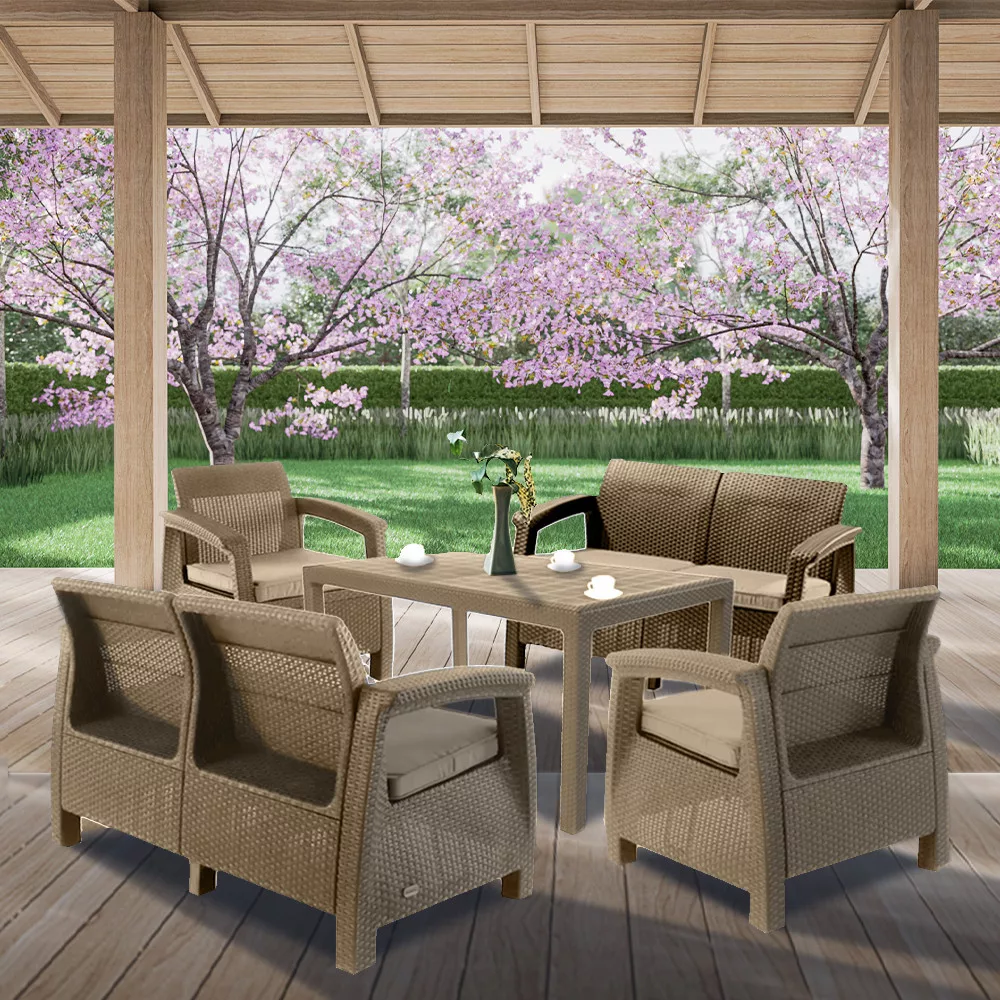 A stílusos Corfu Fiesta II duo szabadidő bútor szett maximális kényelmet garantál a felhasználók számára. A szettet modern dizájn jellemez, melyet természetes rattan fonás inspirált. A szett stabilitását és kényelmét szolid felépítésének és átgondolt szerkezetének köszönheti. A bútor szett két egyszemélyes fotelt, két kétszemélyes kanaépt és egy asztalt tartalmaz. A Corfu termékvonal - kényelmes párnákkal kapható. A bútorok ellenállnak az időjárás viszontagságainak és az UV sugárzásnak.A bútorokat a Curver gyártja, kiknek termékei megtalálhatóak még Keter márkanév alatt is. A Corfu egy kiváló minőségű európai termék, amely a legjobb minőségű fröccsöntött műanyagból készült.