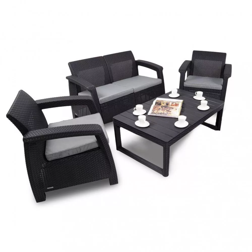 A Corfu Lyon II Duo bútorokat egy magyar Curver gyárban gyártják A Corfu Lyon II Duo bútorok rendkívül kényelmesek. Különösen profilos háttámlákkal rendelkeznek, hogy a lehető legjobban támogassák a háttámlát. A készlet lapos, kényelmes, kb. 6 cm vastag párnákkal is szállítható. A széles kartámaszok jó támogatást nyújtanak, a kis lábak pedig egyenetlen talajon is megfelelő stabilitást nyújtanak.
