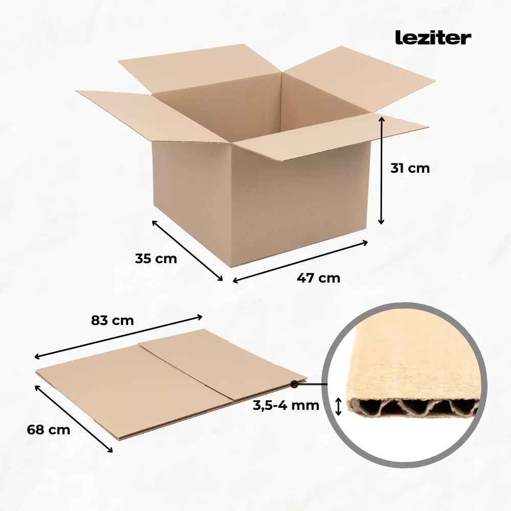 • Kifejezetten csomagautomatákhoz: Az 47x35x31 cm belméretű doboz tökéletesen illeszkedik a legtöbb csomagautomatába, megkönnyítve a szállítást és kézbesítést.