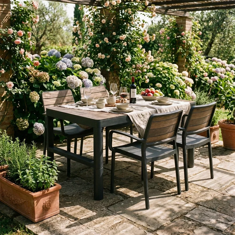 Deco Lyon állítható magasságú műanyag kerti asztal dió-grafit