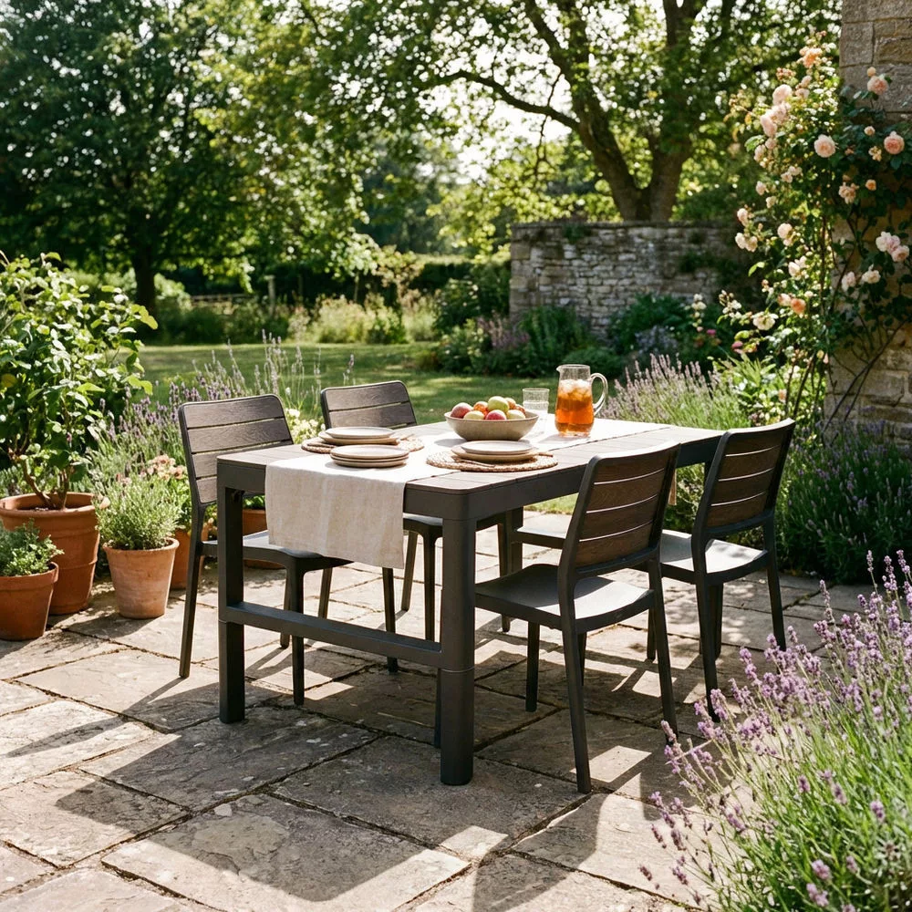 Deco Lyon állítható magasságú műanyag kerti asztal dió-grafit