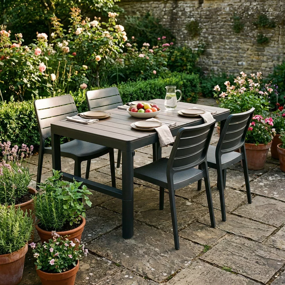 A masszív műanyag szerkezet ellenáll az UV-sugárzásnak és a különböző időjárási körülményeknek, így az asztal kültéri használatra is ideális választás.