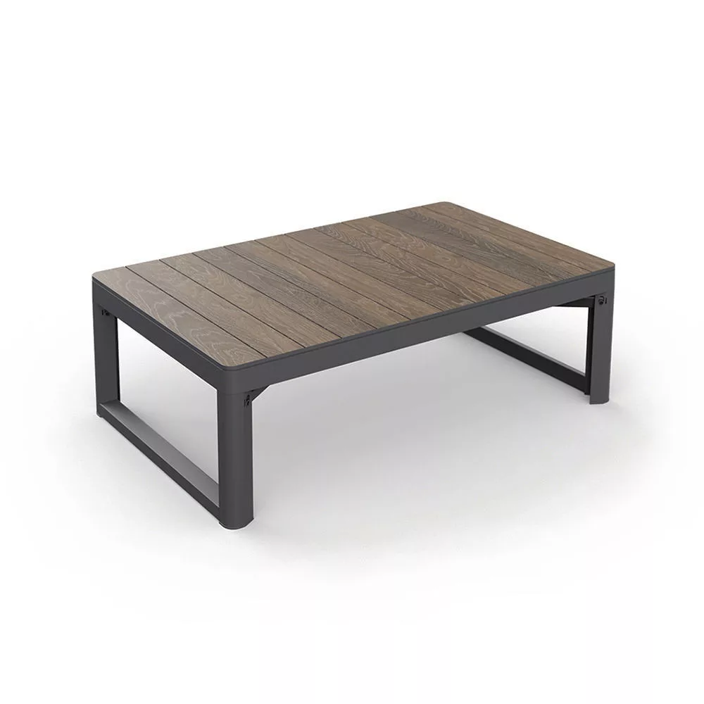 A DecoCoat technológiának köszönhetően az asztal természetes fa hatású felületet kapott, amely elegáns megjelenést biztosít a kertben vagy a teraszon. A felület ellenáll a karcolásoknak és a mindennapi használatból eredő igénybevételnek.