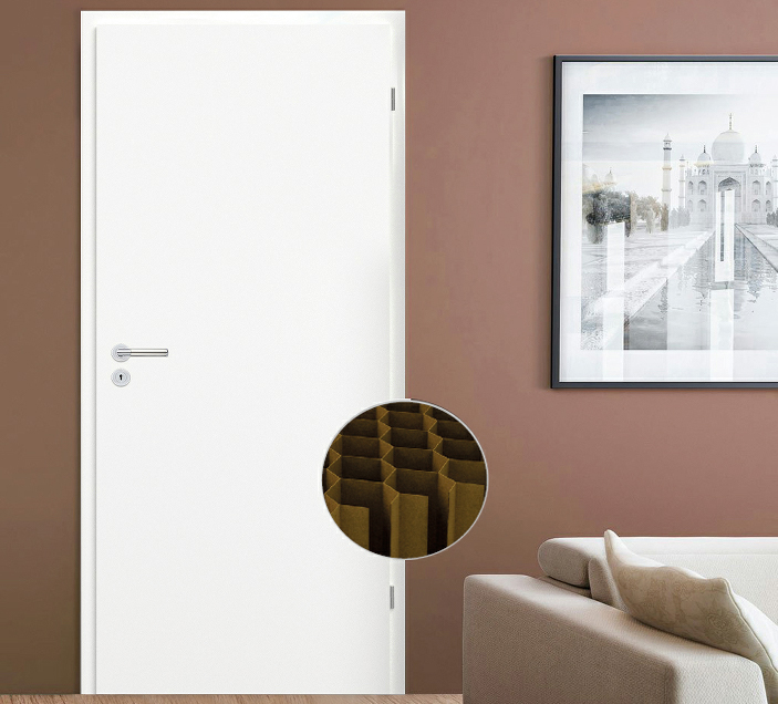 | Papírrács belső kitöltés Speciális technológiai eljárással készülő, méhsejt szerkezetű kartonpapír belső kitöltés az ajtólap fa keretszerkezetei közötti szabad területeken. |