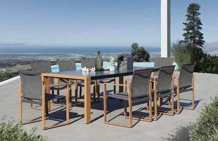 A Duisburg alumínium kerti étkező garnitúra nemcsak kertje vagy terasza tökéletes újjáélesztése lesz, hanem olyan hellyé válik, ahol jól érzi magát, ahol kikapcsolódhat a családjával, vagy olyan hellyé válik, ahol barátaival töltheti el a közös időt. A bútorok stabilitását tömör alumínium váz biztosítja, melyet hosszú élettartam, korrózióállóság és időjárás ellenállóság jellemeznek.