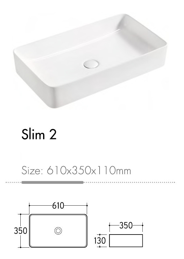 Eros SLIM 2 - PULTRA ültethető - Top Counter - porcelán mosdó - 61 x 35 x 11 cm