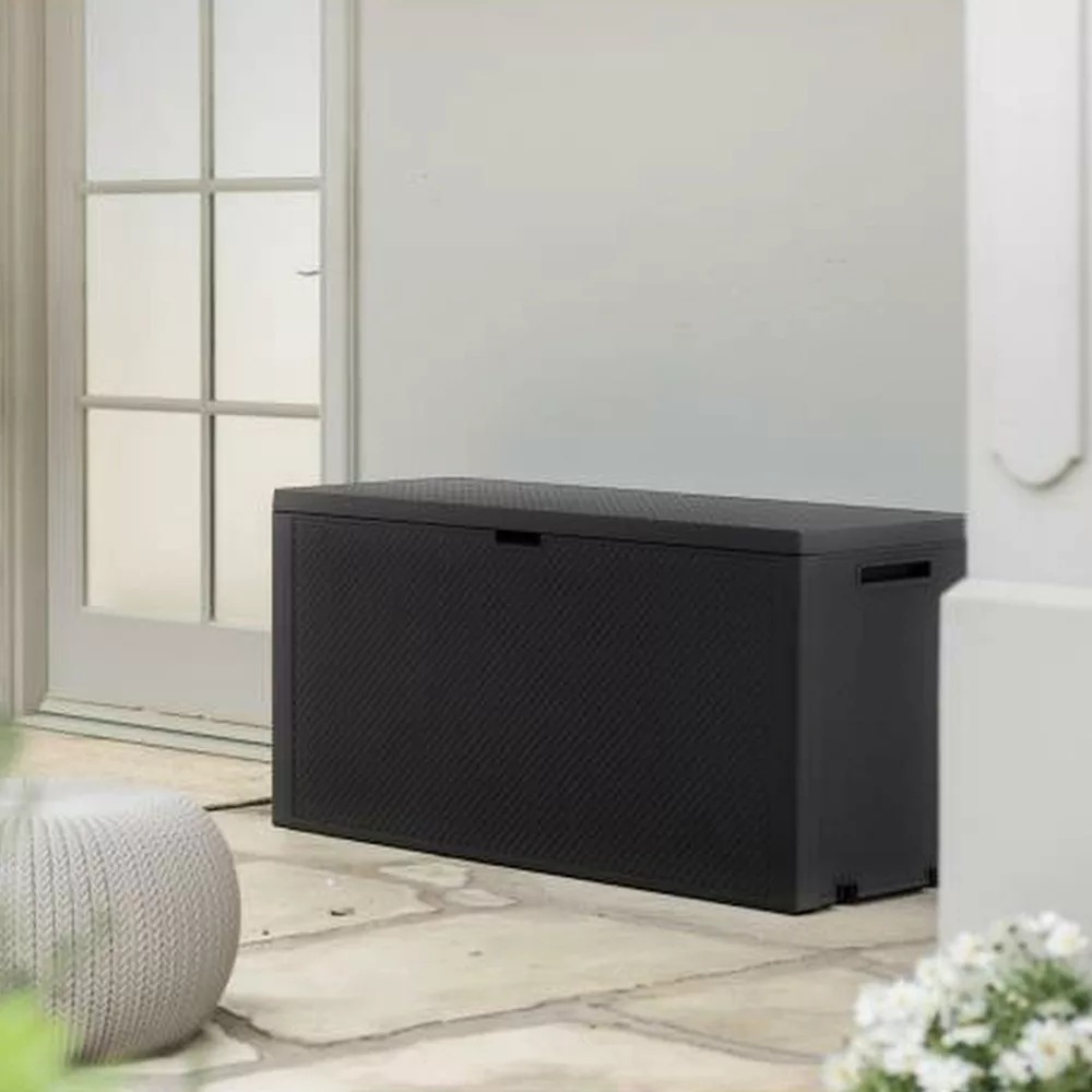 A forma egyszerűsége, valamint a könnyű és gyors összeszerelés az univerzális Emily 270L doboz fő előnyei. A kerti tároló különféle kerti szerszámok és kiegészítők, párnák és gyerekjátékok tárolására szolgál. A modern dizájn és a klasszikus színek lehetővé teszik, hogy a dobozt bármilyen kerti dekorációhoz illessze.
