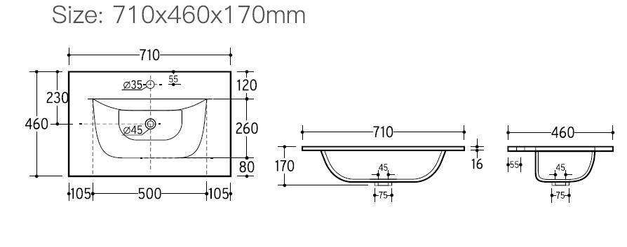 Eros SKY 1 - beépíthető mosdó - 71 x 46 cm