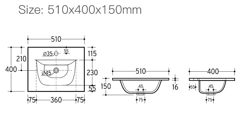 Eros SKY 3 - beépíthető mosdó - 51 x 40 cm