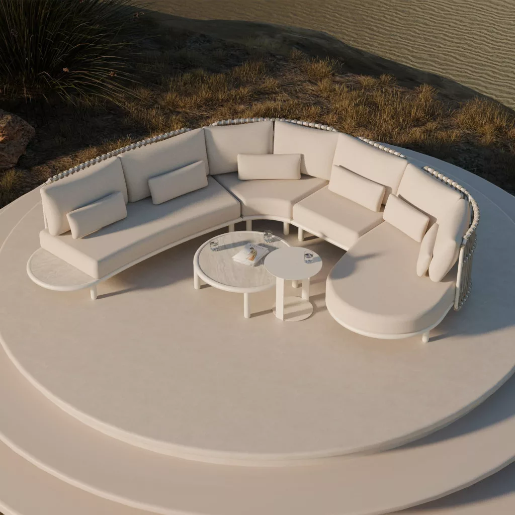 Az Es Vedra kollekció olyan terekbe készült, amelyek az otthon belső terének kiterjesztését célozzák. A visszafogott földszínek, a lágy vonalak és a természetes díszítések a béke és a pihenés légkörét teremtik meg. Kompakt méreteinek és moduláris kialakításának köszönhetően a szett alkalmas mind nagy teraszokra, mind intimebb kertekbe vagy verandákra. Ez egy olyan ajánlat azoknak, akik nemcsak kényelmet, hanem kifinomult stílust is elvárnak kültéri bútoraikkal szemben.