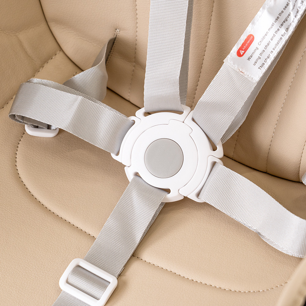 Az 5 pontos biztonsági öv stabilan a helyén tartja a gyermeket étkezés közben. A lekerekített formák és a gondosan kialakított ülőrész segítenek abban, hogy a használat kényelmes és biztonságos legyen, még aktívabb mozgás esetén is.