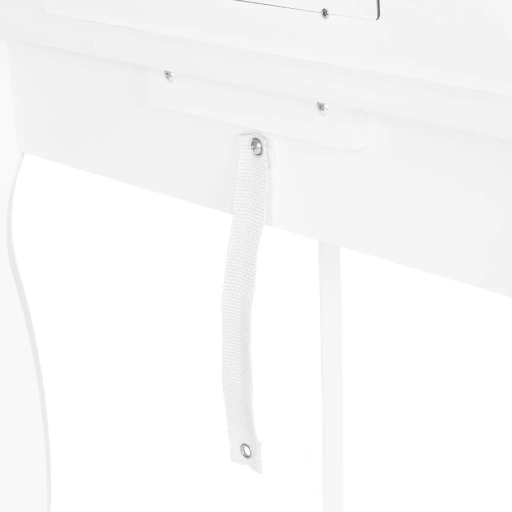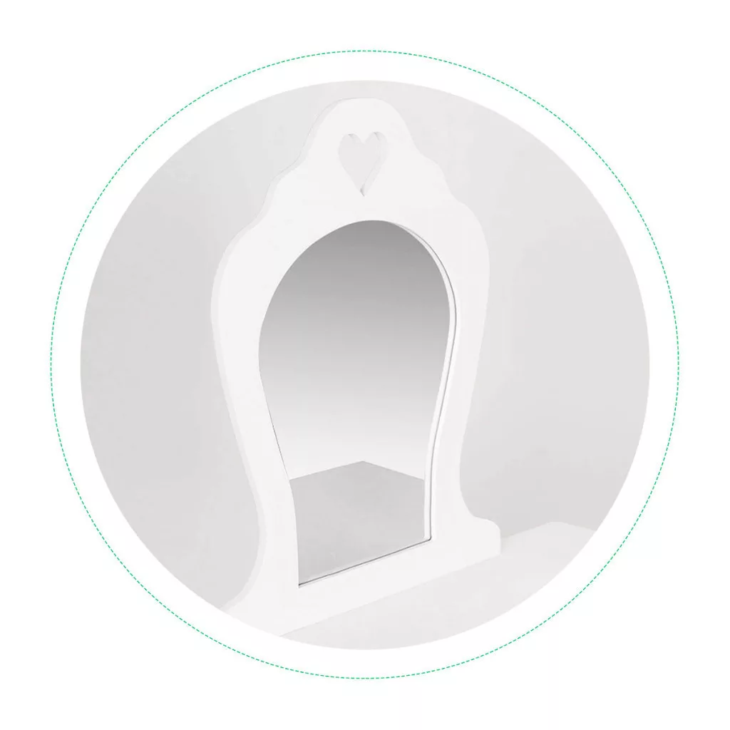 Ennek a fésülködőasztalnak a fő jellemzője a nagy, dekoratív tükör, amely bájt kölcsönöz, és lehetővé teszi a kislány számára, hogy megfigyelje a ruháit és játsszon. A tükör gyönyörűen megtervezett formájú, eleganciát és lányos megjelenést kölcsönöz a fésülködőasztalnak.