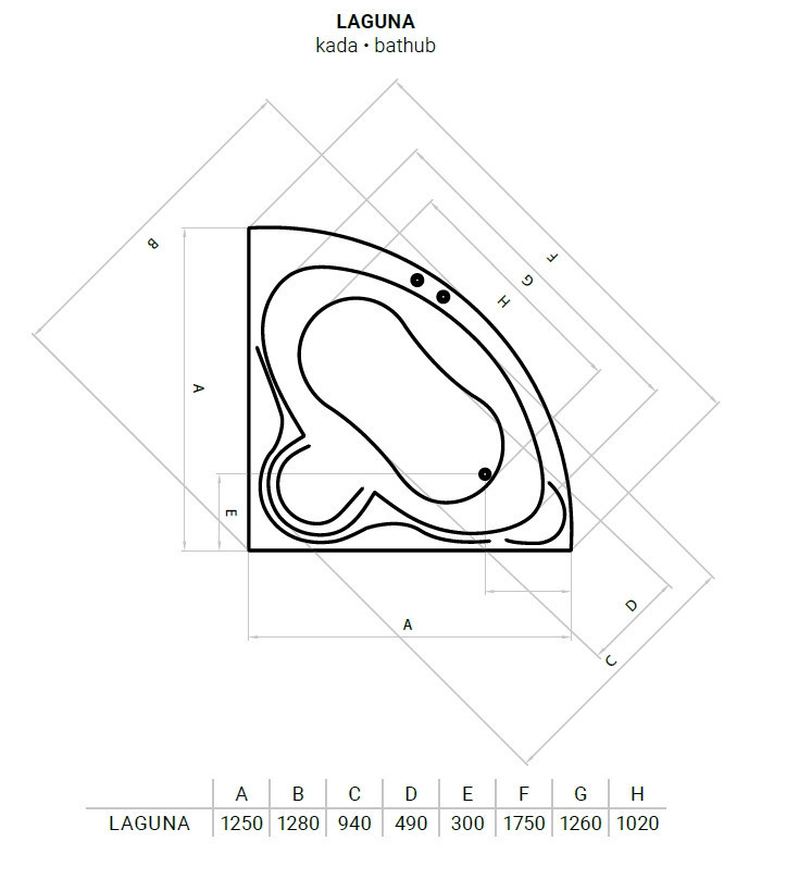Favorit LAGUNA szaniter akril sarokkád - 125 x 125 cm
