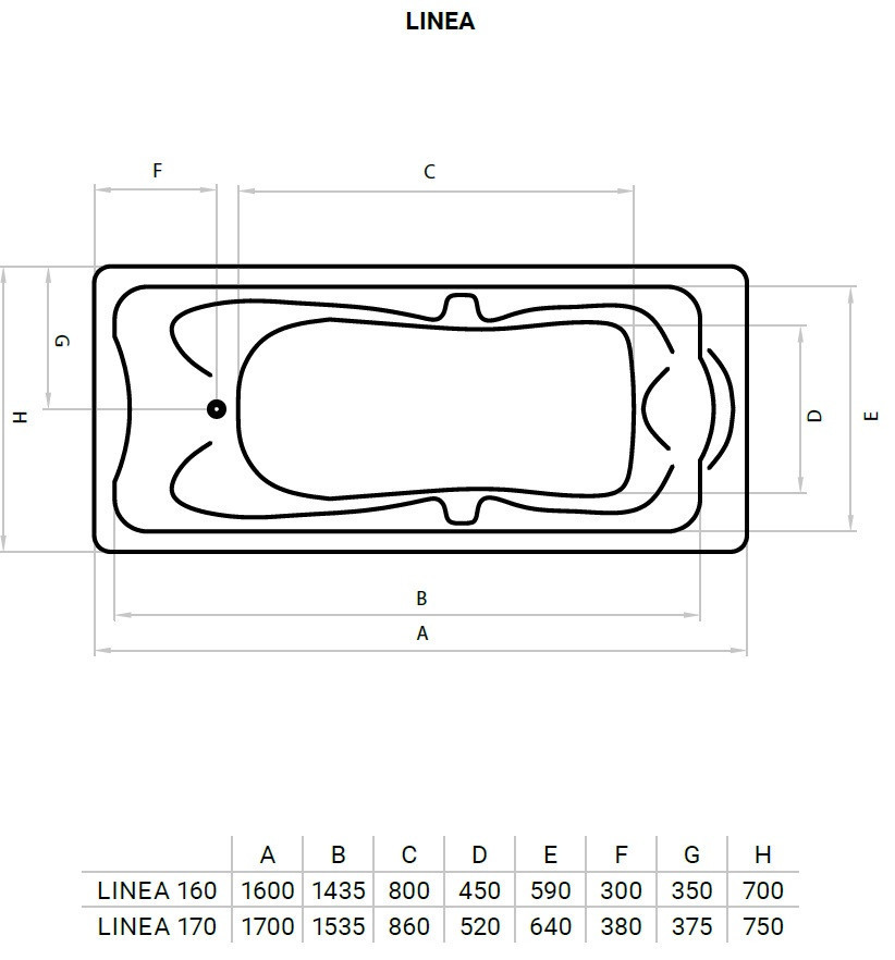 Favorit LINEA szaniter akril kád - 160 x 70 cm