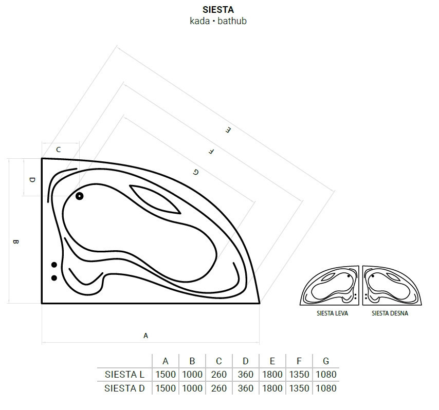 Favorit SIESTA D aszimmetrikus szaniter akril kád JOBBOS - 150 x 100 cm