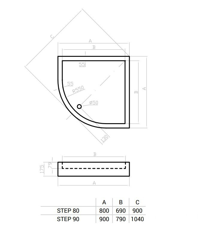 Favorit STEP zuhanytálca íves - szaniter akril - 80 x 80cm