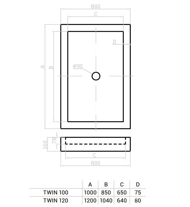 Favorit TWIN zuhanytálca szögletes aszimmetrikus - szaniter akril - 120 x 80 cm