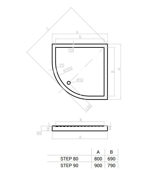 Favorit ULTRA SLIM zuhanytálca íves - szaniter akril - leeresztővel - szifonnal - 80 x 80 cm