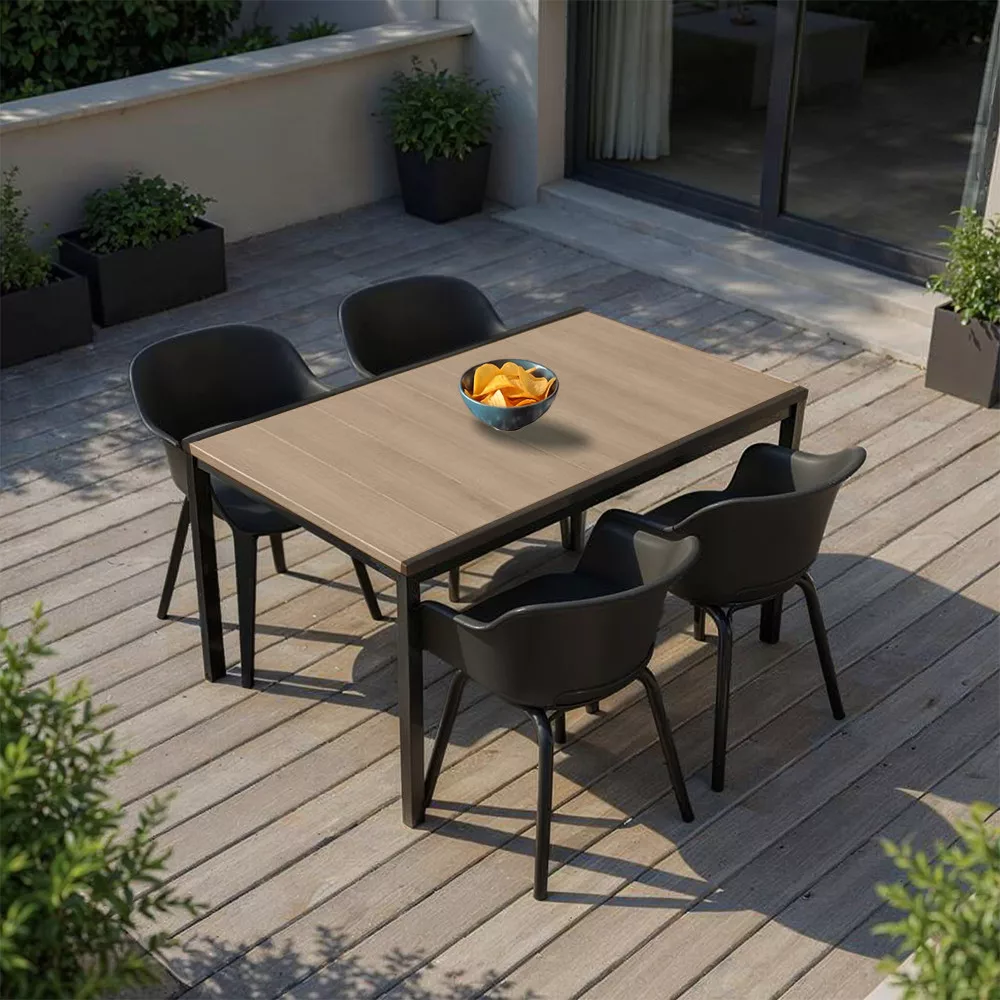 • Szett tartalma: 1 db Porto 160 műanyag kerti asztal (kőris színben) + 4 db Akola Duo kerti szék (grafit színben)