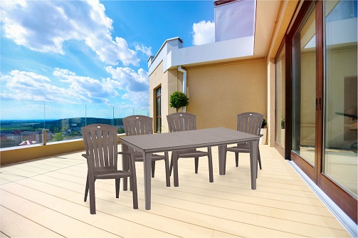 A Futorini kerti bútor garnitúra ideális elemként szolgál a kert, erkély vagy terasz díszítéséhez. Egyszerű formája és minimalista megjelenése teszi univerzálissá és bármilyen elrendezéshez alkalmazkodik. Praktikus és olcsó megoldás , melelsleg egész évben a szabadban állhat. Maga az asztal azt a benyomást kelti, hogy fából készült, de valójában egy remek minőségű müanyagból lett létrehozva.