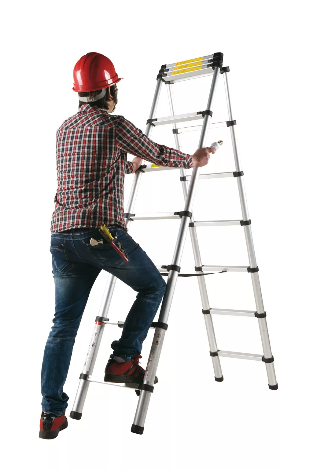 Amennyiben a műhelyében vagy a háztartásban nincs elég tároló hely, ez az összecsukható alumínium teleszkópos létra ideális választás az Ön számára! Összecsukott állapotban csak 0,95 m magas, tehát könnyen kezelhető, akarja akár áthelyezni vagy autóval szállítani. A szerkezete elemei, a létrafokok és a rögzítő zárak az ergonómia elvek szerint vannak kialakítva és támogatják az egyszerű és intuitív használatot.