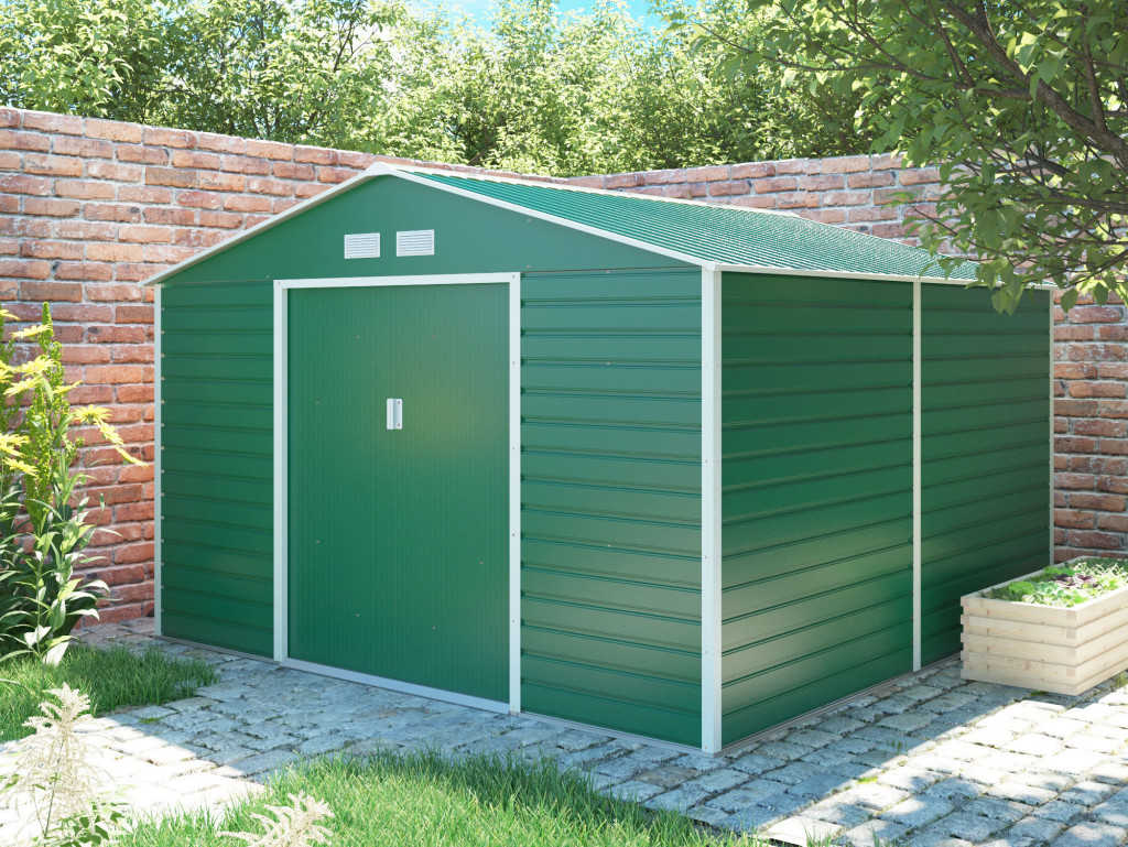 A stabil, horganyzott vázhoz csatlakoztatható a porfestett acéllemez borítás, amely ellenáll az időjárás viszontagságainak. A csomag tartalmazza a zárható ajtófogantyúkat, amelyek biztonságos tárolást biztosítanak a nem kívánt látogatók ellen.
