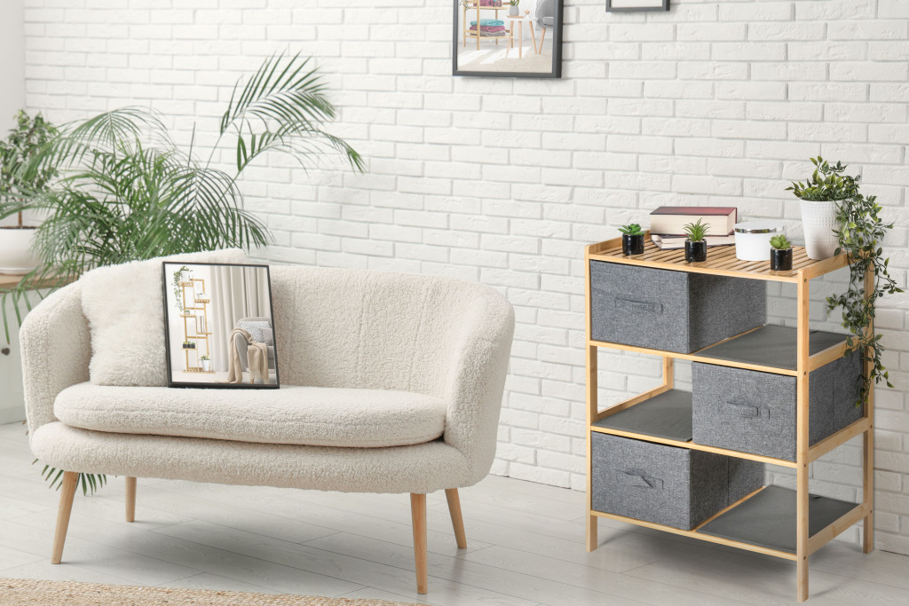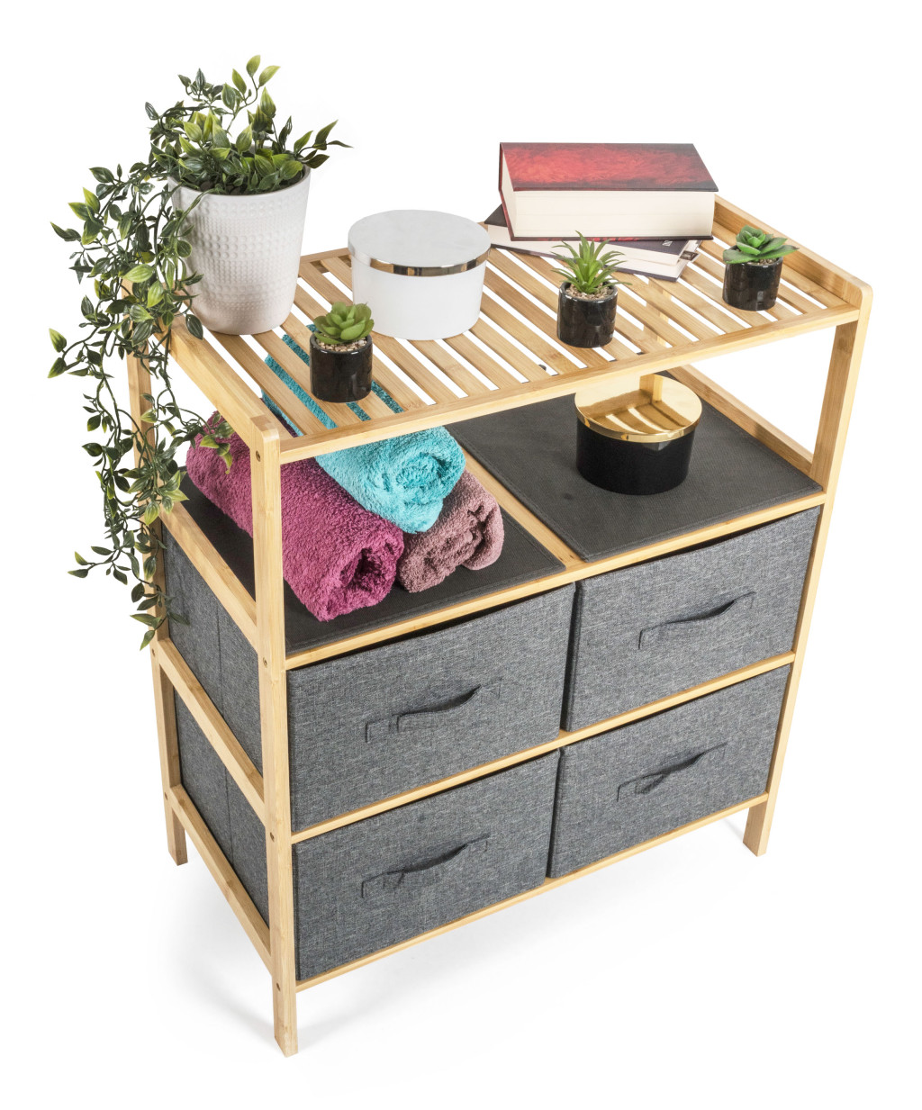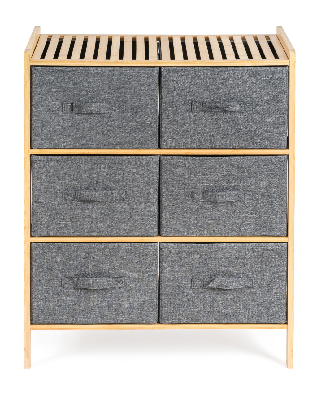 A kihúzható szövetfiókokkal ellátott bambuszpolc kellemes természetes érzetet ad a belső térnek, könnyedség és természetesség érzetet kölcsönöz a belső térnek, miközben szilárdsága és hosszú élettartama stabilitást és tartósságot biztosít. .