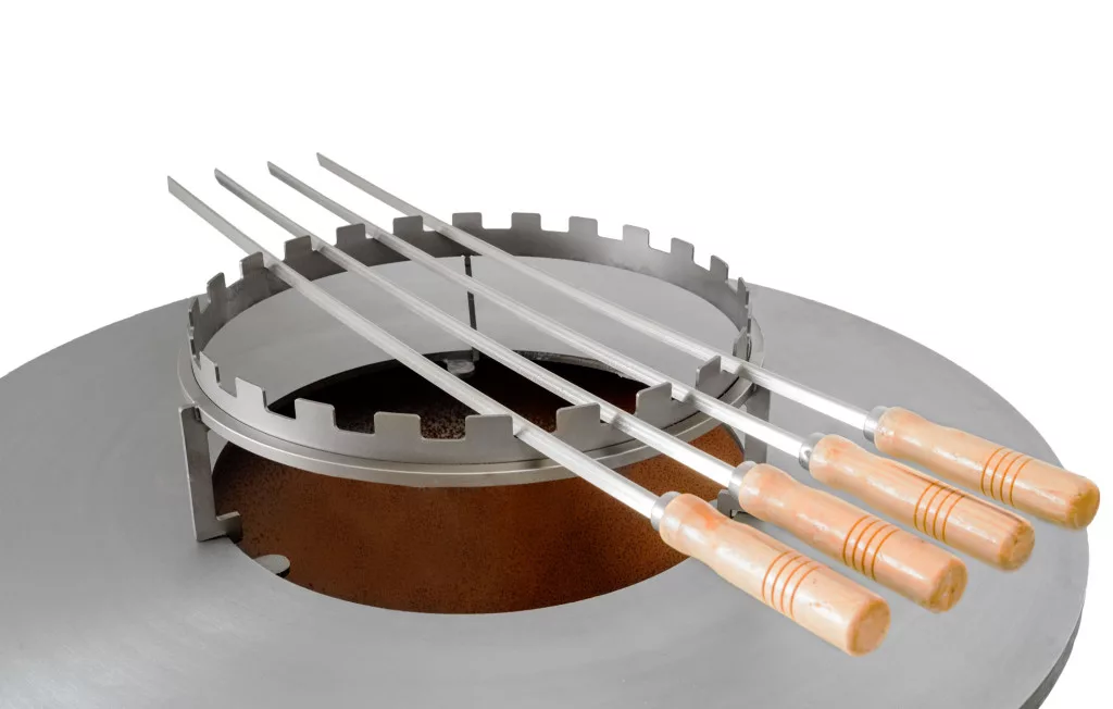 A 4 acélrudaknak köszönhetően tökéletesen illeszkedik a G21 Oregon grillsütő falába, így nem kell attól tartania, hogy elmozdul vagy felborul. A nyársállványban egyszerre 6 nagy nyársat grillezhetsz, vagy a legkülső pozíciókra rakhatsz két kisebbet. A G21 Oregon grill hatalmas grillfelületén a nyársakkal egyidejűleg más finomságok is készülnek.